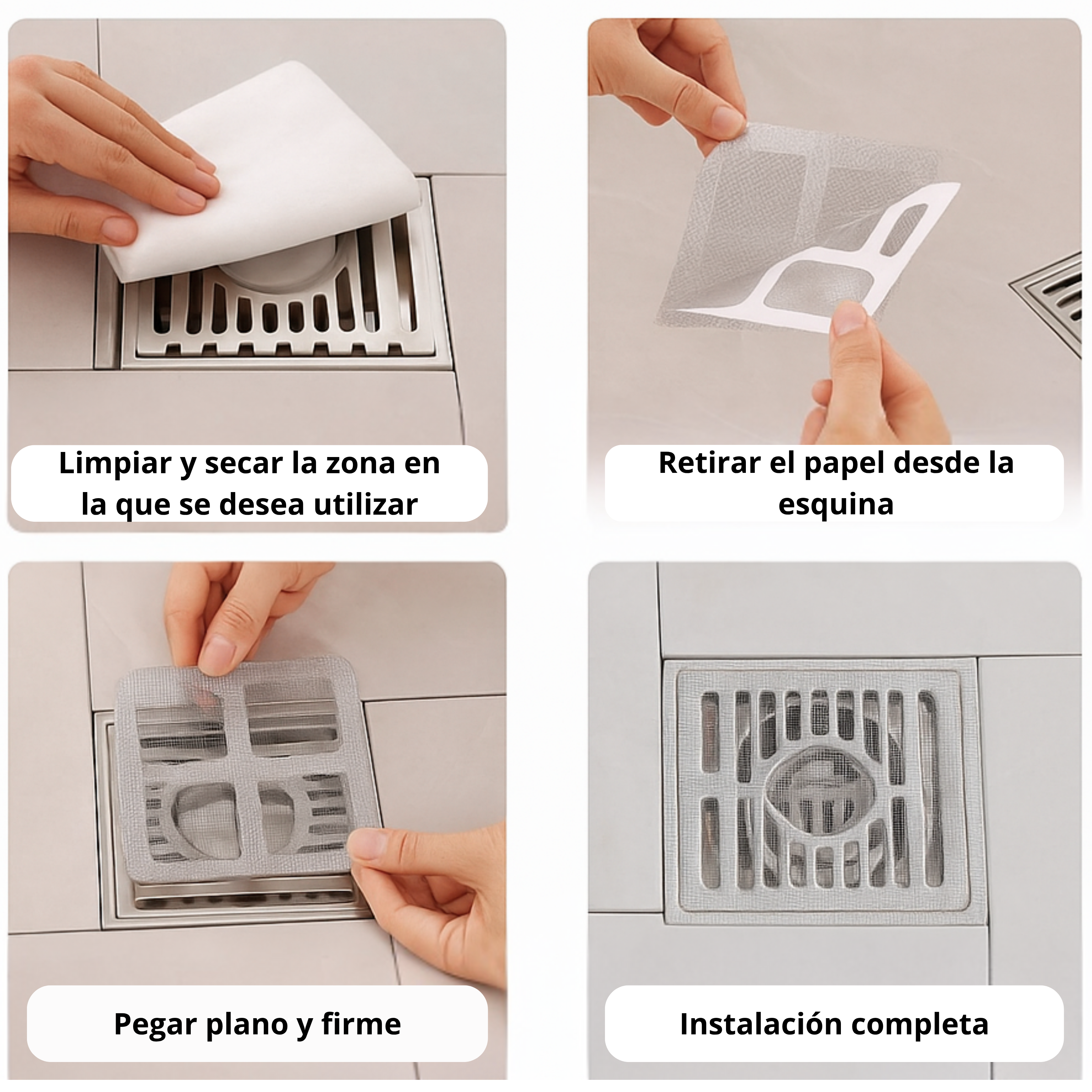 Este práctico y discreto filtro adhesivo es la solución definitiva para evitar que cabellos, restos de comida y suciedad tapen tus desagües. Fabricado con malla ultrafina de alta resistencia, atrapa eficazmente residuos sin interrumpir el flujo de agua.